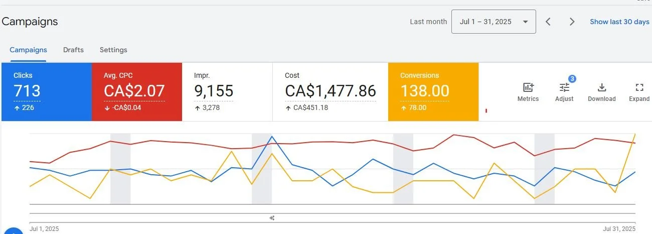 I ran Google Ads for an auto repair shop in Montreal, primarily focused on roadside service and assistance. They also had a body shop that could do all services, but the main focus was on roadside assistance.