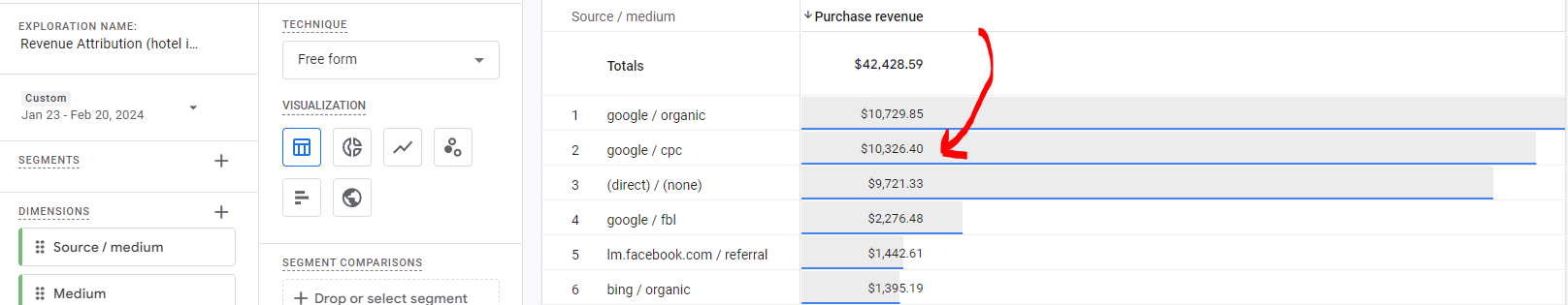 The branded traffic campaign on G Ads was getting a lot of very cheap clicks, which is why we need to rely on data-driven-attribution in GA4 to really get an idea of how the ads are doing.