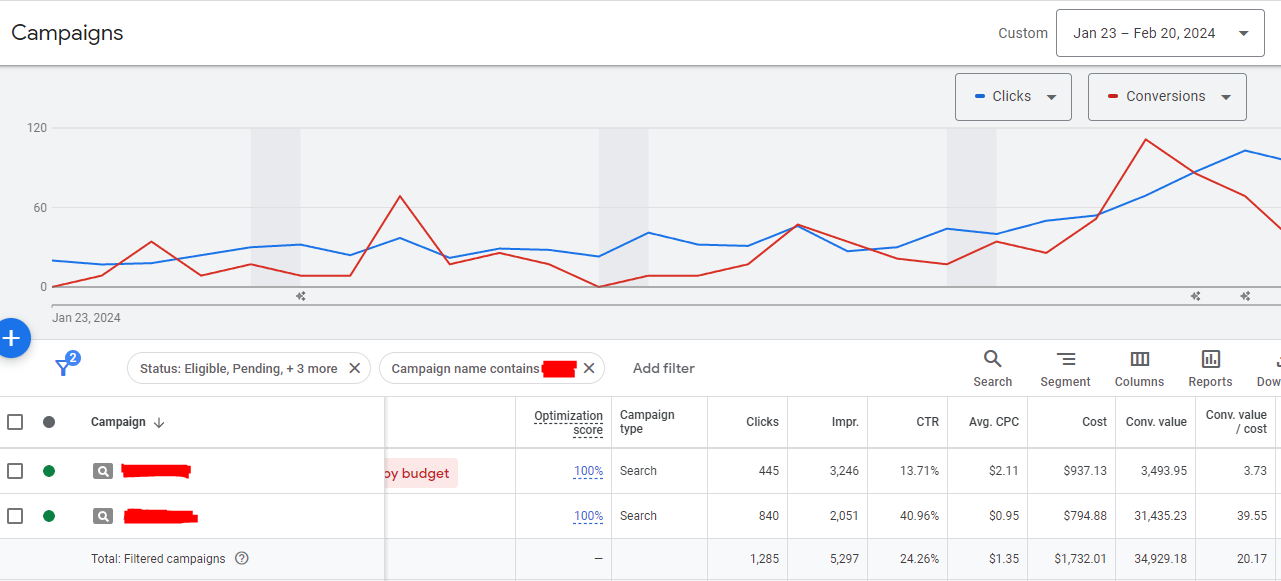The goal ROAS was 5x - we're driving a ROAS of 6, and have reason to believe the revenue attributed to Google Ads should actually be higher. As you can see in the screenshots we have increased the spend in that timeframe and will likely continue to do so as we get results from it.